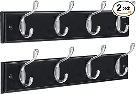 The rack blends well with your home décor from its casual and modern design. It has a black medium density fibreboard with four sturdy zinc hooks that bring a charming decoration to your home.