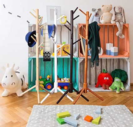 The rack’s tree design is ideal for your little one’s room, hallway, adult bedrooms, entry room, hotels, and much more. You can hang multiple items such as hats, bracelets, skirts, and satchels with this rack.