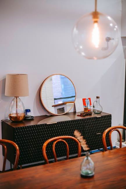 - The dresser has a spacious top surface that can be used for decoration or as an extra workspace.
